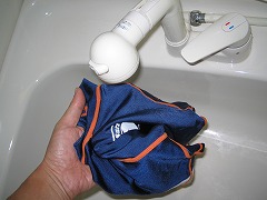 自宅に帰られましたら、もう一度、水道水で念入りに押し洗いを行って下さい。洗剤をどうしても使用する場合は中性洗剤を使用して下さい。