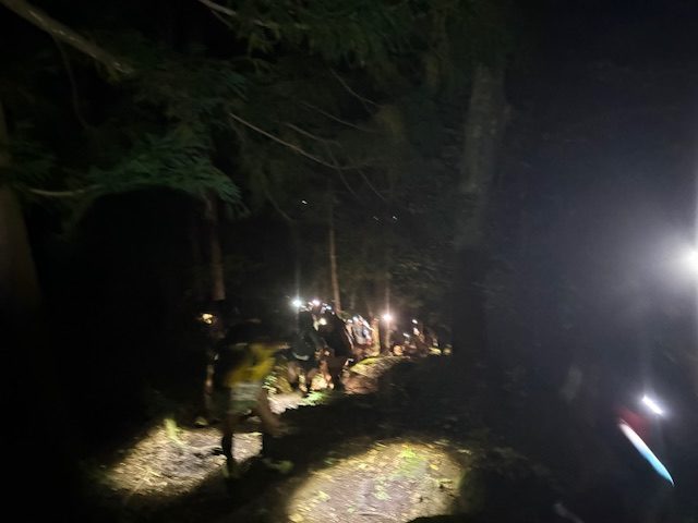 次のエイド「黒姫」の前に110kのランナーと合流できるのでそれを支えに走りました笑