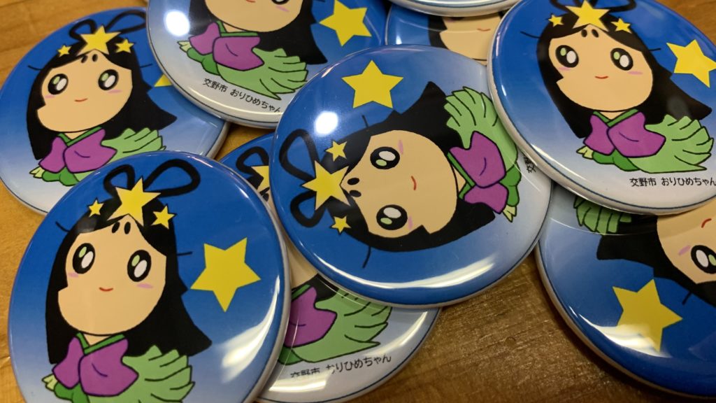 ごほうびは交野市のキャラクターである、おりひめちゃんバッジ(非売品・1個/1人)です!